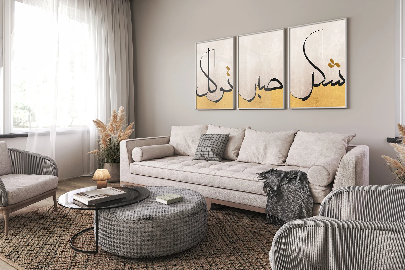 | Caligraphie | Gratitude ( شكر), Patience ( صَبْر), Tawwakul ( التوكل) |